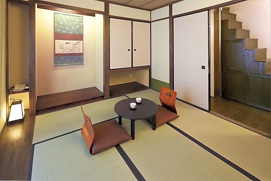Features tatami (woven-straw) flooring and traditional futon bedding. It comes with a garden view and a loft area.